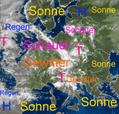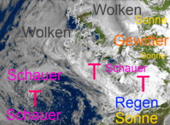 Bildung teils kräftiger Schauer- und Gewitterwolken
