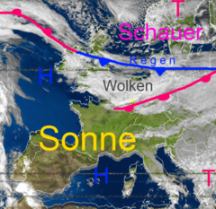 Neues Frontensystem mit Kaltluft im Gepäck auf dem Weg nach Mitteleuropa