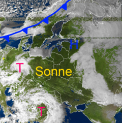 ![]() | | Kaltfront über Benelux 31.03.2017 Regengüsse von Westen vertreiben am Wochenende die Wärme in Deutschland |