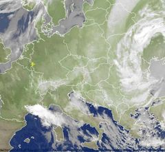 Wolken eines Sturmtiefs über dem Atlantik bereits in Formation.