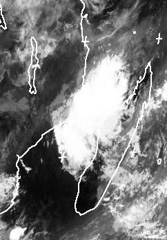 Über der Straße von Madagaskar liegt noch der Rest des Zyklons 'Jaya'. Er hat sich aber sehr abgeschwächt, sodass er keine gefährlichen Windgeschwindigkeiten mehr bringt. Er hat aber noch einen kompakten Wolkenschirm und auch Regen bringt er über dem Meer noch reichlich. (Bildquelle: NERC Satellite Receiving Station, Dundee University, Scotland, http://www.sat.dundee.ac.uk/)