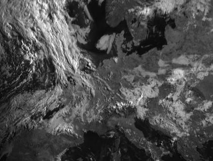Vor allem über Süd- und Osteuropa sind auf dem Satellitenbild von Freitag früh noch Schauer- und Gewitterwolken zu erkennen. Dichte Wolken aus Westen sorgen auch in Großbritannien und Frankreich für Schauer und Gewitter. In Norddeutschland, Südskandinavien und im Baltikum bringt dagegen leichter Hochdruckeinfluss meist freundliches und trockenes Wetter.
