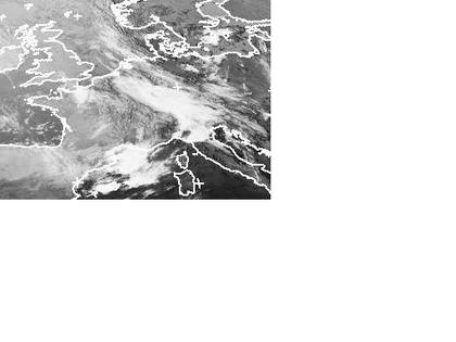 Eine Luftmassengrenze erstreckt sich von der Nordsee über den Westen Deutschlands bis zu den Alpen, und trennt warme Luftmassen im Osten von kühleren im Westen. Dabei kommt es zu dichten Wolken und teils kräftigen und ergiebigen Regen. (Bildquelle: NERC Satellite Receiving Station, Dundee University, Scotland, http://www.sat.dundee.ac.uk/)