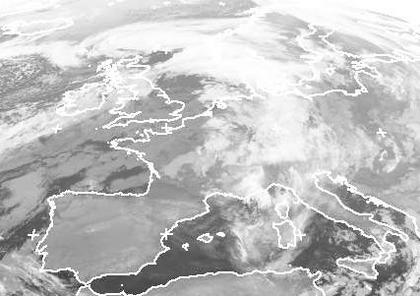 Zwischen Schottland und Norwegen liegt das Tief 'Dieter'. Seine Warmfrontbewölkung findet man über Südskandinavien und Ostdeutschland. Die Kaltfront liegt dagegen noch über Irland und dem Atlantik und kommt nur langsam ostwärts voran. Dazwischen kann in einem ausgeprägten Warmsektor sehr milde Luft nach Norden strömen. Die starke Bewölkung ist hier nur niedrig, daher auch nur schwach zu erkennen. (Bildquelle: NERC Satellite Receiving Station, Dundee University, Scotland, http://www.sat.dundee.ac.uk/)