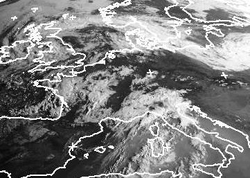 Von Schottland über Südskandinavien bis nach Polen erstreckt sich noch die Okklusion mit ihrer Bewölkung von Tief 'Dörthe' über den Britischen Inseln. Dahinter ziehen mit südwestlicher Strömung nur einzelne Wolkenfelder nach Deutschland. Sie können aber heute dennoch ein paar Gewitter bringen. (Bildquelle: NERC Satellite Receiving Station, Dundee University, Scotland, http://www.sat.dundee.ac.uk/)