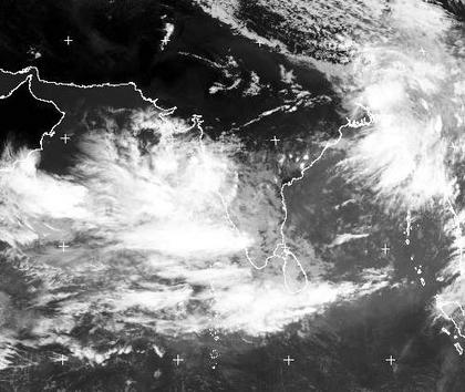 Weite Teile Indiens sind noch gering bewölkt. Teils werden Temperaturen über 45 Grad erreicht. Im Nordosten und im Südwesten erkennt man jedoch bereits die Bewölkung der ersten sommerlichen Monsunniederschläge. (Bildquelle: NERC Satellite Receiving Station, Dundee University, Scotland, http://www.sat.dundee.ac.uk/)
