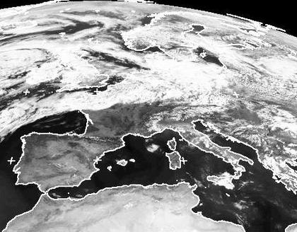 Auf dem Satellitenbild vom Samstagmittag präsentiert sich Europa zweigeteilt. Über der Nordhälfte ziehen von West nach Ost Tiefdruckgebiete mit vielen Wolken hinweg. Weiter im Süden sind Wolken eher die Ausnahme. Vor allem über Italien und Griechenland findet man örtlich jedoch schon beginnende Gewitterwolken des Nachmittags.