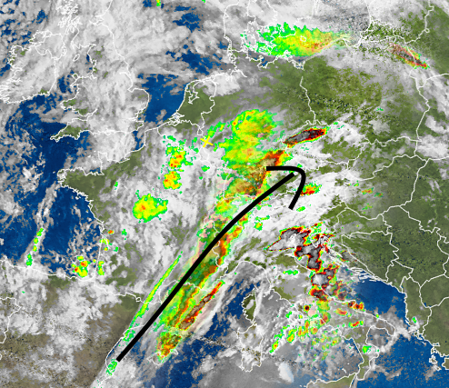 Mit einer südwestlichen Strömung fließt aus dem Mittelmeerraum feuchte und warme Luft nach Europa ein. An den Alpen und in Ostdeutschland regnet diese Luft stark ab. Es gibt heute Nacht Unwetter in Süd- und Ostdeutschland. Mehr dazu im Deutschlandwetter.