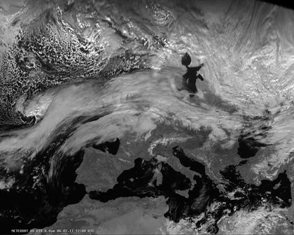 Auf dem heutigen Satellitenfoto zeigt sich im Groben eine Zweiteilung des Wetters. Während es im südlichen Teil Europas unter Hochdruckeinfluss weitgehend sonnig und trocken bleibt, sorgt Tiefdruckeinfluss im nördlichen Europa für meist viele Wolken und zeitweiligen Schnee oder Regen.