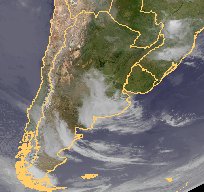 Auf dem Satellitenbildausschnitt vom südlichen Südamerika zeigt sich kräftige Quellbewölkung über Teilen des Südens und des Ostens von Argentinien. Hierbei sind gebietsweise kräftige Schauer und Gewitter zu erwarten.