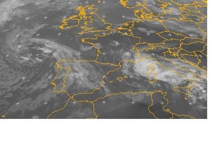 Tiefdruckeinfluss sorgt vor allem in Italien, aber auch auf der Iberischen Halbinsel für Schauer und Gewitter. Von Südskandinavien bis nach Polen bringt ein schwacher Tiefsausläufer ebenfalls teils dichte Wolken, es bleibt aber meist trocken. Sonst bleibt es unter leichten Hochdruckeinfluss meist freundlich mit nur wenigen Wolken. (Bildquelle: EUMETSAT)