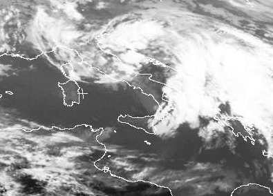 Der Ausschnitt zeigt die Entwicklung von Schauern und Gewittern in der Umgebung eines kleinen Tiefs über der Adria. Das Tief entstand an der Luftmassengrenze zwischen feuchtwarmer Meeresluft und weniger feuchter Festlandsluft. Durch die mittlerweile kräftige Sonneneinstrahlung bilden sich dabei häufig Schauer und Gewitter.