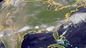 Wolken findet man über den USA derzeit vor allem im Bereich eines Wolkenbands über den Südstaaten. Hier gibt es auch einzelne größere Gewitterzellen. Weiter nach Norden ist die Luft etwas kühler und trockener, es finden sich nur hier und da einige lockere Wolken.