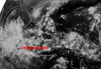 Über Indonesien haben sich am Donnerstag Nachmittag (Ortszeit) wieder mal zahlreiche, teils auch großräumige Gewitterzellen gebildet. Indonesien liegt etwa zwischen 11 Grad südlicher und 6 Grad nördlicher Breite und damit genau innerhalb der Innertropischen Konvergenzzone (ITC), in der aufsteigende Luftmassen oft zu Gewittern führen. Die Niederschlagsmengen liegen hier zwischen 2000 und 4000 mm im Jahr, was etwa 5 mal so viel ist wie die Niederschläge in Deutsschland.