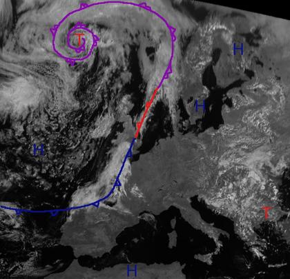 Hoch 'Juliane' liegt heute über Skandinavien und sorgt für wolkenarmes und damit sonniges Wetter von Finnland über Deutschland bis ans westliche und zentrale Mittelmeer. Dagegen zeigen sich im Osten und Südosten einige Schauer- und Gewitterzellen. Ein ausgedehntes Tief mit Zentrum bei Island liegt mit vielen Wolken, Regen und Gewittern über Nordwesteuropa. Bis morgen Abend nähern sich die Ausläufer auch Deutschland an und beenden teilweise das sehr sommerliche Intermezzo.