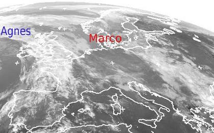 Das Hoch 'Marco' hat seinen Schwerpunkt etwas nach Norden verlagert und liegt zur Zeit über dem Süden Skandinaviens, es sorgt in großen Teilen Europas für sehr freundliches und trockenes Wetter. Tief 'Agnes' mit ihrem Zentrum über dem Nordatlantik sorgt dagegen für viele Wolken und teils kräftigen Regen auf Island und den Britischen Inseln. Leichter Tiefdruckeinfluss sorgt zudem in Osteuropa für teils dichtere Wolken mit etwas Regen. Im Mittelmeerraum ist es insgesamt freundlich bei häufig leichter Bewölkung und es bleibt überwiegend trocken.