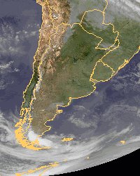 Ein Hoch sorgt derzeit für wolkenarmes Wetter von Südbrasilien bis nach Patagonien. Nur im äußersten Süden wird der südamerikanische Kontinent von Tiefausläufern gestreift.