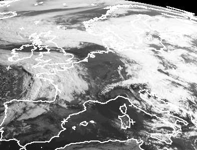 Über dem Osten und Nordosten Deutschlands liegen noch die dichten Wolken von Tief 'Marian', die aber nach Nordosten abziehen. Unter Hoch 'Valeska' ist es sonst nur gering bewölkt. Vom Atlantik her nähert sich aber bereits ein neues Frontensystem mit seinen Wolken, das jedoch nur den Westen Deutschlands erreicht. (Bildquelle: NERC Satellite Receiving Station, Dundee University, Scotland, http://www.sat.dundee.ac.uk/)