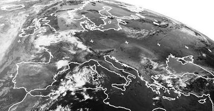 Auf dem Satellitenbild von Mittwoch früh sind weite Teile Mittel- und Osteuropas nahezu wolkenfrei. Hierfür sorgt ein Hochdruckgebiet, dass sich von Norditalien über Russland bis nach Skandinavien erstreckt. Vor allem über Frankreich und den Beneluxländern bringt heute ein Tief Wolken und teils kräftige Gewitter.