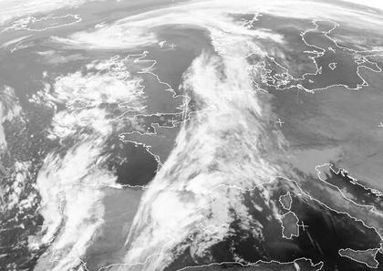 Am Samstagmorgen erstreckt sich ein breites Wolkenband von Norwegen über die Nordsee und den Westen Deutschlands bis nach Frankreich und zum Mittelmeer. Weiter östlich ist es nahezu wolkenlos, nur über der Poebene in Italien liegen teilweise dichte Hochnebelfelder. Verantwortlich dafür ist weiter das kräftige Hochdruckgebiet 'Klaus' über dem Baltikum und Russland. Die Wolken werden dagegen von einem schwachen Tief Verursacht, das mit seinem Zentrum nördlich von Schottland liegt. Deutlich kräftiger, aber kaum erkennbar, ist das Tiefdruckgebiet 'ex-Gordon' bei Irland. Es steuert mit seinem Höhenwirbel auch den Verlauf der Wolkenfront über Frankreich und der Nordsee.