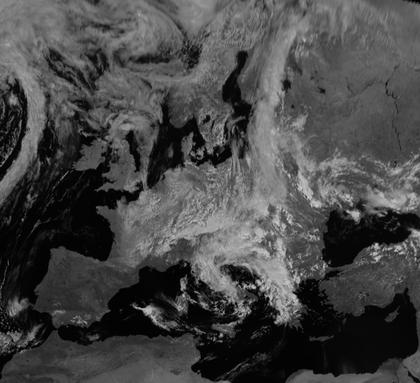 Auf dem Satellitenbild von Europa ist zu sehen, dass sich nun auch in West- und in Mitteleuropa Hochdruckeinfluss und sonniges Wetter durchsetzt. Vom Balkan bis zum Weißen Meer halten sich dichtere Wolken mit Schauern und Gewittern. Osteuropa ist weiterhin wolkenarm.