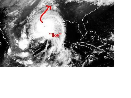 Auf dem Satellitenbild von Samstag früh ist das Auge des Hurrikan 'Ike' über dem Golf von Mexiko gut zu erkennen. Zurzeit erreicht er mittlere Windgeschwindigkeiten von 175, in Böen 215km/h und erreicht heute die Küste von Texas nahe Houston. Berechnungen zufolge soll er Richtung Nord- Nordost ins Landesinnere Ziehen und sich dabei langsam abschwächen. Es ist mit ergiebigen Niederschlägen zu rechnen, an der Küste besteht Sturmflutgefahr. (Bildquelle: NERC Satellite Receiving Station, Dundee University, Scotland, http://www.sat.dundee.ac.uk/)