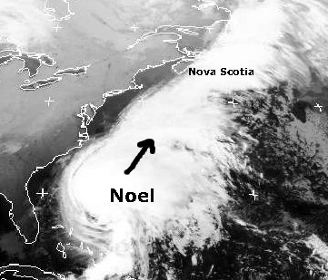 Der Hurrikan 'Noel' mit mittleren Windgeschwindigkeiten um 130 km/h lag am Freitag nördlich der Bahamas und östlich von Florida. Er zieht schnell weiter nach Nordosten und streift am Samstag zunächst die Nordostküste der USA. Orkanböen und heftige Regenfälle sind im Küstenbereich möglich. Noch am Samstag zieht er dann über Nova Scotia hinweg und erreicht auch die anderen kanadischen Atlantikprovinzen. (Bildquelle: NERC Satellite Receiving Station, Dundee University, Scotland, http://www.sat.dundee.ac.uk/)