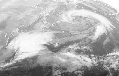 Der Ausschnitt zeigt ein Sturmtief über dem östlichen Pazifik bei den Kurilen und Kamtschatka. Auf dem Satellitenbild erkennt man sehr gut die Okklusion (die Kaltfront hat die Warmfront eingeholt), sie erstreckt sich spiralförmig vom Zentrum des Tiefs bis zu den japanischen Inseln. Dahinter haben sich in der feuchtkühlen Luft mehrere Schauerwolken entwickelt. Ein weiteres kleines aber kräftiges Tief (links im Bild) überquert heute Japan und sorgt für ergiebigen Regen im Süden des Landes und vor allem auf Kyushu.