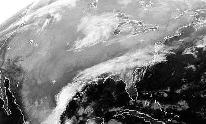 In den USA sorgt Hochdruckeinfluss meist für ruhiges und freundliches Wetter. Teils hält sich aber, vor allem im Nordosten, was jedoch auf dem Satellitenbild nur schwach zu erkennen ist, Hochnebel. Mehr Wolken und teils auch Regen gibt es im Bereich eines Höhentiefs südwestlich der Großen Seen. Auch an einer Luftmassengrenze vom Golf von Mexiko bis an die Ostküste, die kühle Luft im Norden von tropisch warmer im Süden trennt, finden sich Wolken und Regen.