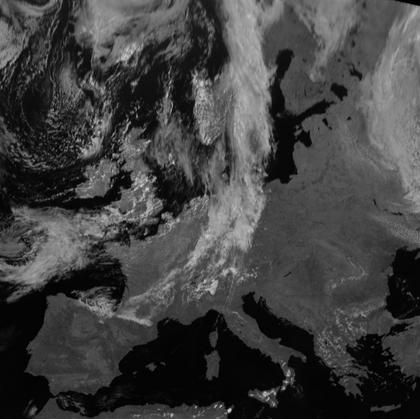 Das Zentrum von Tief 'Eberhard' liegt nördlich des Polarkreises, seine Kaltfront erstreckt sich jedoch weit nach Süden. Man erkennt ihr Wolkenband über Schweden, Deutschland und Südfrankreich bis zu den Pyrenäen. Auf ihrer Rückseite ziehen von den Beneluxstaaten und Nordfrankreich bei wieder zunehmendem Hochdruckeinfluss nur noch einige lockere Wolken nach Deutschland.