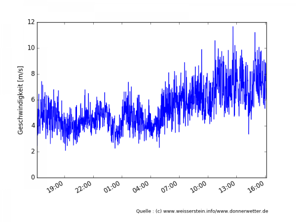 Damit verbunden ist ein heftiger Wind, wie hier am Weißen Stein am Donnerwetter.de Wetterpark in der Eifel. In Böen wurden 12 m/s erreicht. Mehr dazu hier.