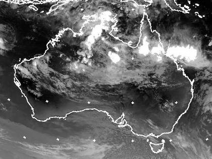 Die sommerliche Erhitzung des australischen Kontinents sorgt derzeit vor allem im Norden für teils kräftige Gewitter, die sich im Infrarotbild durch eine besonders helle, also kalte Wolkenoberseite abzeichnen. Weiter nach Süden gibt es weniger Wolken und es ist meist trocken. An der Küste von Victoria und Tasmanien kommt es nur zu eher leichten Schauern.