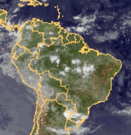 Auf dem Satellitenbild sind ausgeprägte Gewitterzellen über Brasilien erkennbar.