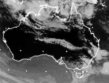 In Nordaustralien kommt es während der sommerlichen Regenzeit zu teils kräftigen Gewittern. Im Nordwesten, an der Timorsee, ist zudem ein kleiner Wirbel zu erkennen, es handelt sich um den schwachen Zyklon 'Billy'. Weiter im Landesinneren ziehen teils einige hohe Wolken durch, die aber derzeit keinen Niederschlag bringen. Etwas Regen oder auch leichtere Gewitter gibt es aber noch im Südosten des Kontinents, auf der Rückseite eines Tiefs über der Tasmansee.