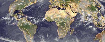 Entlang der innertropischen Konvrgenzzone haben sich kräftige Schauer und Gewitter entwickelt. Die Zellen dieser konvektiven Systeme sind auf dem Satellitenbild gut erkennbar.