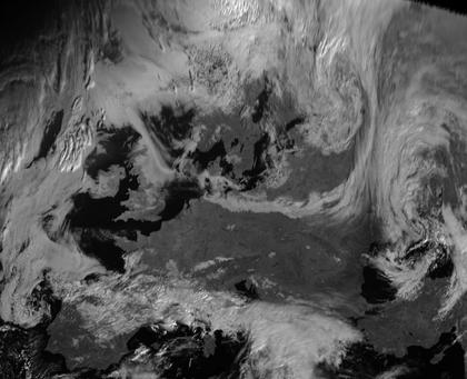 Das heutige Satellitenfoto zeigt einen breiten Streifen freundlichen Hochdruckwetters von Großbritannien über Mitteleuropa bis zum Schwarzen Meer. Auch im östlichen Mittelmeer bleibt es unter Hochdruckeinfluss freundlich und weitgehend trocken. Ein kräftiges Tief bei Süditalien sorgt dagegen vor allem rund um die südliche Adria für gebietsweise kräftigen Regen. Auch im westlichen und zentralen Mittelmeerraum sowie in Nordeuropa herrscht meist Tiefdruckeinfluss mit teils dichten Wolken und möglichem Regen.