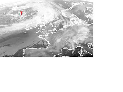 Auf dem Satellitenbild von Montag früh ist ein Tiefdruckgebiet bei Island mit seinen Wolken gut zu erkennen. Seine Fronten erstrecken sich bis nach Großbritannien und auf den Atlantik und bringen teils Regen. In den nächsten Tagen gelangt vor allem Norddeutschland in den Einfluss dieses Tiefs. (Bildquelle: NERC Satellite Receiving Station, Dundee University, Scotland, http://www.sat.dundee.ac.uk/)