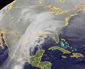 Zwischen feucht-warmer Luft im Süden und kühlerer Luft im Norden hat sich über Texas ein kräftiges Tiefdruckgebiet entwickelt. Seine Regenwolken erstrecken sich teils ins mittlere Mexiko, zunehmend dehnen sie sich aber auch über die Osthälfte der USA aus. Das Tief verlagert sich allmählich ostwärts. Durch die Feuchtigkeit, die es dabei vom Golf von Mexiko ansaugt, kommt es morgen über dem Südosten der USA zu teils sehr kräftigem Regen.