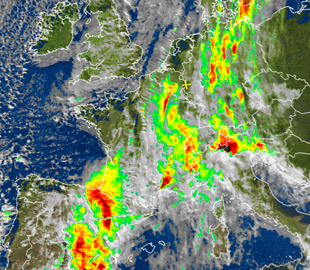 Eine dicke Wolkenschicht zieht derzeit über den Himmel Deutschland. Zeitweise regnet es daraus noch. Zumeist ist es aber schon trocken. Zunehmend bestimmt jetzt ein Hochdruckgebiet das Wetter in Mitteleuropa. Kräftiger Regen fällt im Mittelmeerraum, besonders in Spanien.