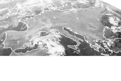 Auf dem Satellitenbild von Sonntag früh sind vor allem über Mittel- und Osteuropa unter Hochdruckeinfluss kaum Wolken zu erkennen. Die dichten Wolken im westlichen Mittelmeer gehören zu einem Tief über den Balearen und bringen dort heute etwas Regen, und auch in Großbritannien kommt es zu Niederschlägen. (Bildquelle: NERC Satellite Receiving Station, Dundee University, Scotland, http://www.sat.dundee.ac.uk/)
