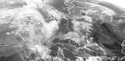 Von den östlichen Alpen bis zum Baltikum halten sich noch Wolken des Tiefs 'Theo', es hat sich fast aufgelöst, sorgt aber heute und morgen noch für Schauer in Osteuropa. In West- und Nordwesteuropa bringt das Tief 'Steven' leicht wechselhaftes Wetter mit Wolken und leichtem Regen. Das Hoch 'Viorica über den Pyrenäen hat sich etwas abgeschwächt, auf dem Satellitenbild ist kaum zu erkennen. Zum Wochenende nimmt sein Einfluss auf das Wetter in Mitteleuropa wieder zu.