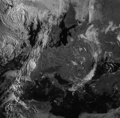 Weite Teile Europas zeigen sich wolkenarm. Im Westen Europas sind dichtere Wolken von Tief 'Karin' zu sehen, dass sich mit seinem Zentrum über den Äusseren Hebriden befindet.
