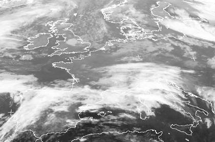 In weiten Teilen Europas hat sich wechselhaftes und kühles Wetter eingestellt; auf dem Satellitenbild vom Dienstagmorgen erkennt man von der Nordsee über Norddeutschland bis nach Polen sowie in Südskandinavien verbreitet Schauerwolken; sie entwickeln sich in feucht-kühler Luft, die auf der Rückseite eines Tiefs über Nordosteuropa von Nordwesten heranströmt. Über Portugal und Spanien erstreckt sich das Frontensystem eines anderen kleinen Tiefs. In Südengland und Frankreich sorgt das Hoch 'Petra' über dem Atlantik für lockere Bewölkung.