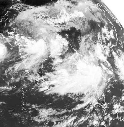 Über dem indischen Subkontinent und Südostasien erkennt man die Bewölkung der derzeitigen Monsunniederschläge.