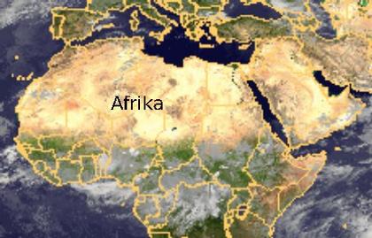 In den Wüstenregionen Nord-Afrikas sowie über der Arabischen Halbinsel und im südwestlichen Asien zeigen sich heute Mittag wie an vielen Tagen im Jahr kaum Wolken. Einzelne schwache Schauerwolken sind im Nordwesten Afrikas und im Süden der Arabischen Halbinsel zu finden. Das trockenheiße Wetter hat auch das östliche Mittelmeer erfasst. Dagegen sind am Äquator zahlreiche Schauer- und Gewitterwolken vorhanden, hier sorgt der Regen für die Begrünung des Landes.