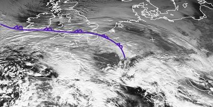 Am Donnerstag Mittag liegt vom Ärmelkanal bis nach Nordwest- und Südwestfrankreich ein Wolkenband, das zu einer Okklusion eines Tiefdruckgebietes am westlichen Mittelmeer gehört. Da es vor allem in der Höhe warme Luft mit sich transportiert, fällt neben Schnee teilweise schon Regen, obwohl die Temperaturen am Boden noch unter dem Gefrierpunkt liegen. Damit sind die Bedingungen für Blitzeis gegeben, den es heute am Tage vor allem über Frankreich auch schon gab. In den Abendstunden sind mit Voranschreiten der Front nach Norden auch die Gebiete in Benelux und dem westlichen Deutschland vom Blitzeis betroffen. (Bildquelle: NERC Satellite Receiving Station, Dundee University, Scotland, http://www.sat.dundee.ac.uk/)