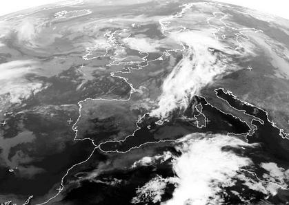 Das Satellitenbild zeigt ein Tief mit Kern bei Schottland, sowie ein Randtief das sich an dessen Kaltfront über Dänemark gebildet hat. Deutlich zu sehen ist der Unterschied in der Bewölkung vor und hinter der Front. Die Kaltfront setzt sich weit nach Süden bis nach Nordafrika fort.