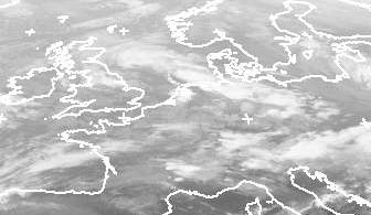 Von Polen bis vor den britischen Inseln liegt die Okklusion des atlantischen Tiefs 'Fody'. Es brachte mit seinen Wolken teils kräftigen Regen nach Mitteleuropa. Über Südskandinavien sind die Wolkenlücken bei schwachem Hochdruckeinfluss dagegen größer, so dass es hier kaum regnet. (Bildquelle: NERC Satellite Receiving Station, Dundee University, Scotland, http://www.sat.dundee.ac.uk/)