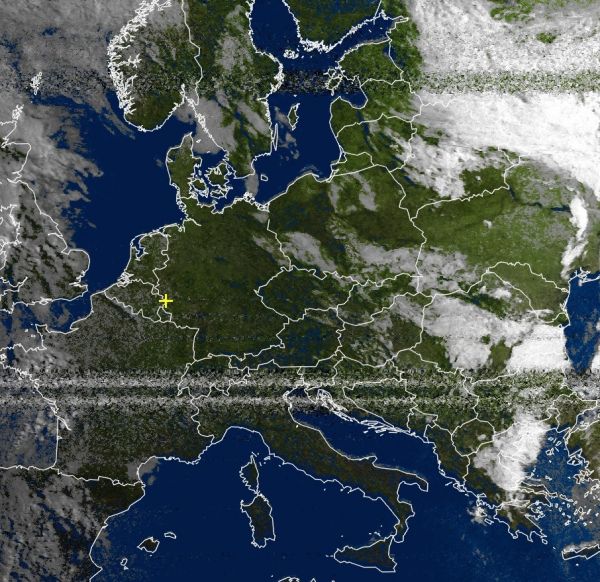 Über Großbritannien trifft heute ein Tief von Island kommend mit kühlerer Luft im Schlepptau auf die aufgeheizten Luftmassen über Europa. Dadurch bilden sich heute vielerorts über den Britischen Inseln kräftige Schauer und Gewitter, die im Tagesverlauf über die Nordsee weiter ostwärts ziehen.