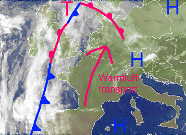 Warmlufttransport nach Mitteleuropa